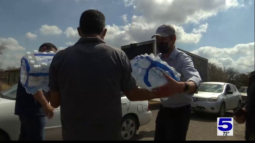 "We've been traveling the state of Texas, going to the communities hardest hit by the storm, by the electricity outages and then by the loss of water," O'Rourke said. "Where we can and when we can, we're bringing water with us. So, I brought a pallet of water down from Robstown and we're in communities-- either in a boil water notice or [that] don't have any water at all, going door to door to hand out water."