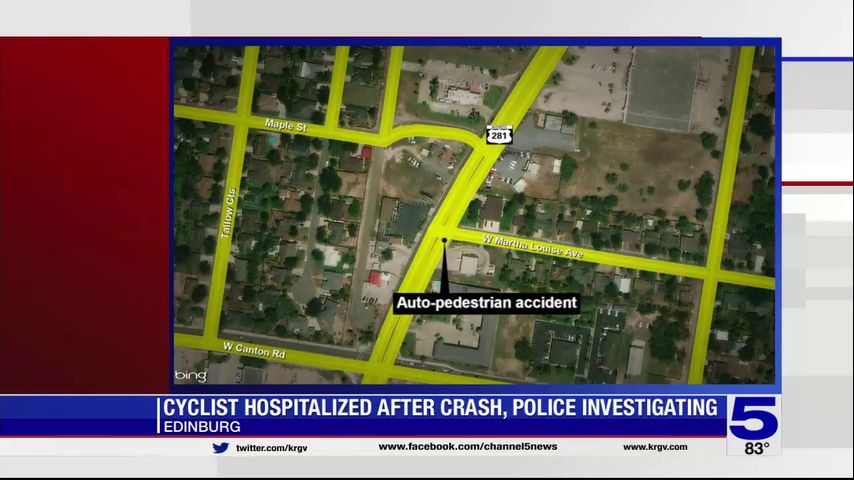 Bicyclist hospitalized after being hit by vehicle in Edinburg, officials say