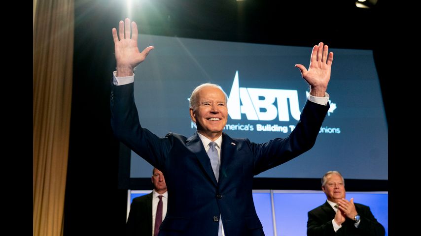 Greeted with chants of "Let's Go Joe" from a raucous crowd of building trades union members — a key base of Democratic support — Biden showcased the tens of thousands of construction jobs being created since he took office that are supported by legislation he signed into law.