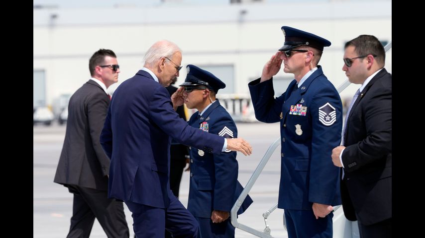 Biden abordó el avión presidencial y les dijo a los reporteros que viajaban con él que "me siento bien". El mandatario no utilizaba mascarilla en su trayecto hacia el avión presidencial.