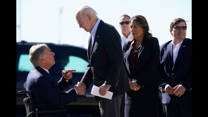 Biden watched as border officers in El Paso demonstrated how they search vehicles for drugs, money and other contraband. In a sign of the deep political tensions over the immigration, Republican Gov. Greg Abbott handed Biden a letter upon his arrival that said the "chaos" at the border was the "direct result" of the president's failure to enforce federal laws.