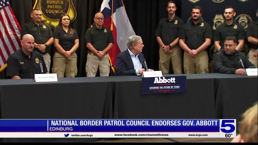 Days after the governor officially announced his bid for re-election in McAllen, Gov. Greg received his first endorsement from the National Border Patrol Council in Edinburg on Monday.