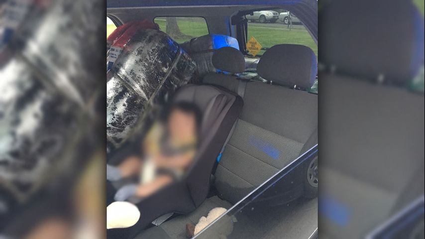 An infant was found along with bundles of drugs in the back seat of the vehicle.