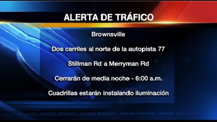 BROWNSVILLE - Parte de la autopista 77 en dirección norte en Brownsville estará cerrada debido a reparaciones de iluminación.