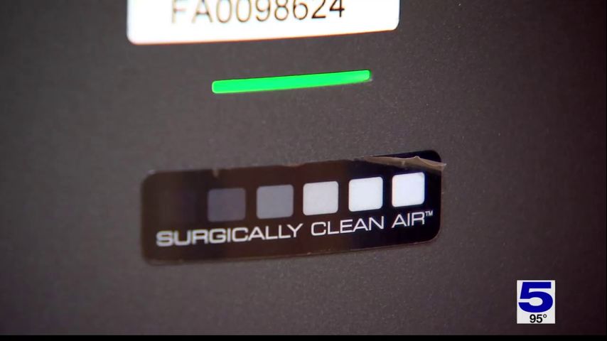 "It sucks in from the bottom, then it goes through the carbon filtration systems, then it goes through the UV light which actually kills the virus,” Saenz said.