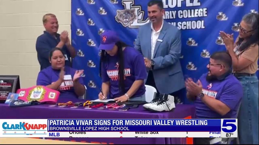 BROWNSVILLE, Texas -- Brownsville Lopez's Patricia Vivar signed her national letter of intent for Missouri Valley Wrestling. Vivar becomes the first female wrestler in school history to sign to collegiate wrestling.