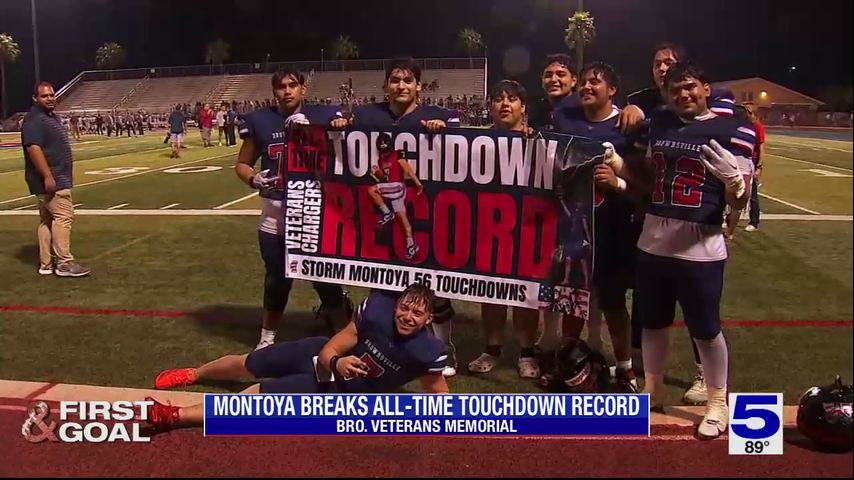 BROWNSVILLE, Texas -- Brownsville Veterans' senior starting quarterback Storm Montoya became the school's all-time leader in touchdowns at their game against Sharyland Pioneer. Montoya sat with 57 touchdowns at game's end, breaking the previous record of 55.