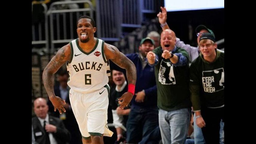 The top-seeded Bucks placed seven players in double figures in their fourth straight win after dropping the series opener. Khris Middleton had 19 points and eight rebounds, and Eric Bledsoe finished with 18 points.