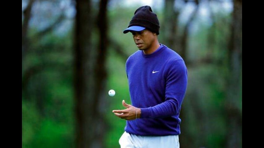 Tiger Woods was layered in clothing for an early nine holes of practice to beat the rain, with a knit beanie over his cap. From a distance, it was hard to distinguish between tour pros and club pros, major champions and major rookies. All of them were bundled in dark rain gear.