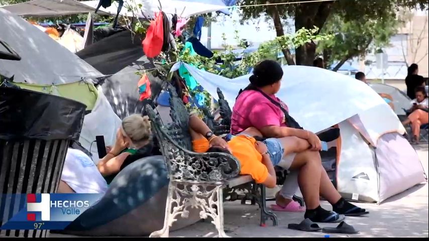 Buscan reubicar a migrantes que están en la plaza de La República en Reynosa, Tamaulipas