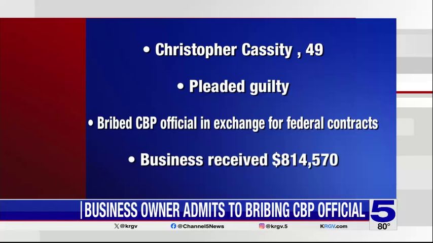 Hamdani said 49-year-old Christopher Cassity admitted between July 29, 2019, and Dec. 29, 2022, he and an information security system officer, who lives in Pharr, carried out the bribery scheme.