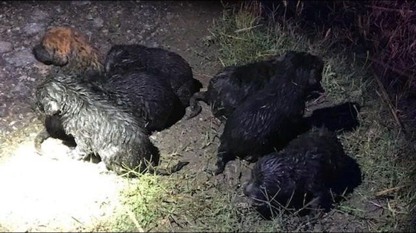 The agencies put in a collaborative effort to pull the seven pups that were trapped inside a drainage culvert pipe.