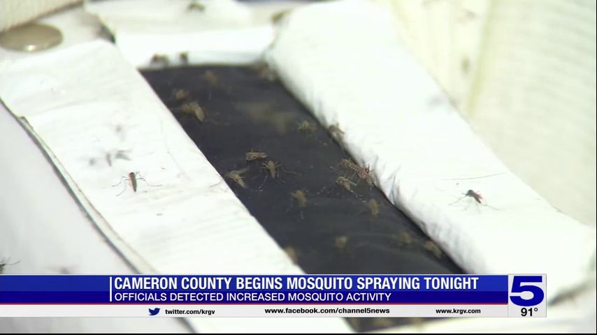Mosquito spraying will begin Monday night in Cameron County. Public health authorities say their surveillance shows an increase in mosquito activity this past week.