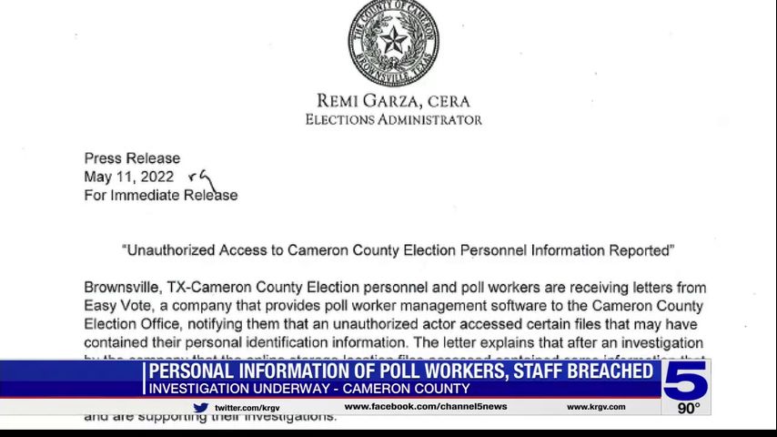 An investigation is underway after the Cameron County Elections Department said the personal information of staff and poll workers was breached in January.