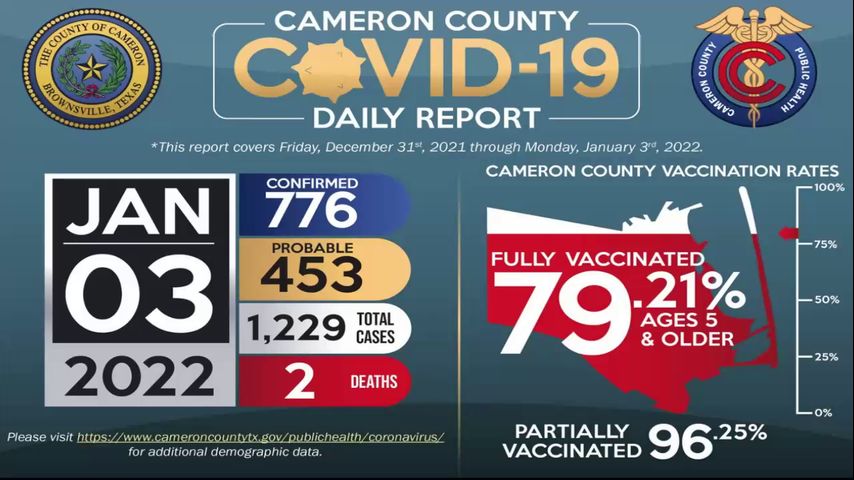 Vaccination efforts continue across Cameron County; currently, 79.21% of the population five years and older is fully vaccinated.