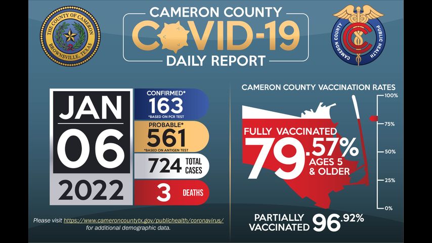 Vaccination efforts continue across Cameron County; currently, 79.57% of the population five years and older is fully vaccinated.