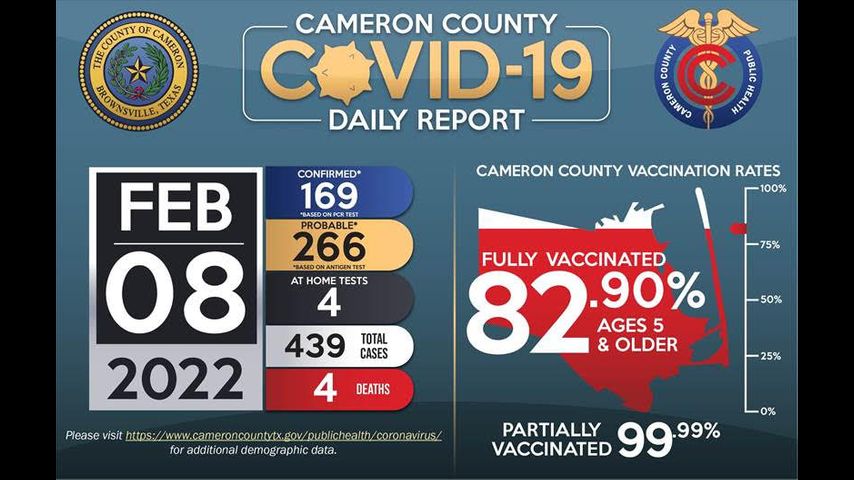 Vaccination efforts continue across Cameron County; currently, 82.90% of the population five years and older is fully vaccinated.