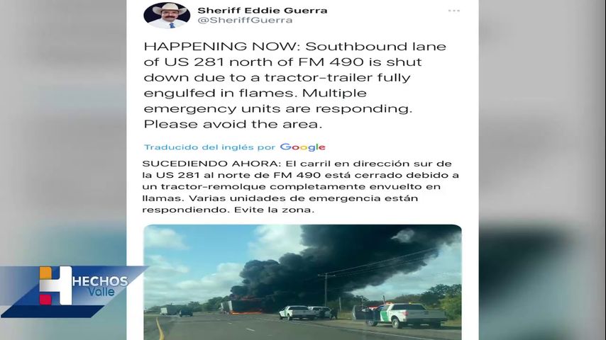 Camión en llamas en la carretera 281