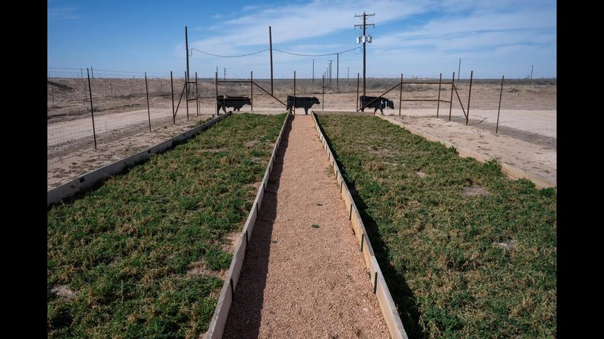 Lopez and her team began testing treated produced water on native West Texas plants in August of 2023. Inside a makeshift greenhouse, there were yucca, mesquite and agave plants, and grass. With state permission, they began discharging produced water into a controlled tract of land where alfalfa was grown in February 2024.