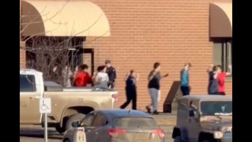 A video showed students walking out with their hands raised as police vehicles surrounded the building and a helicopter circled overhead.