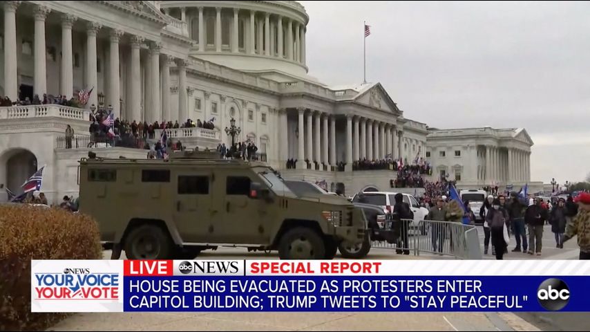 Lawmakers crouched under desks and donned gas masks while police futilely tried to barricade the building when people marched to the Capitol from a rally near the White House in support of President Donald Trump. Washington's mayor instituted an evening curfew in an attempt to contain the violence.