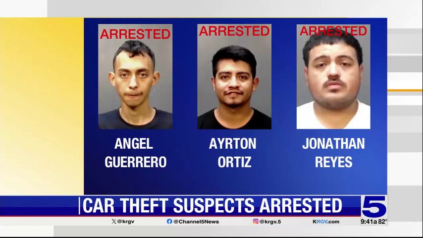 Ayrton Ortiz, 26, Angel Guerrero, 20, and Jonathan Reyes, 22, were arrested following several auto theft incidents, according to a news release.