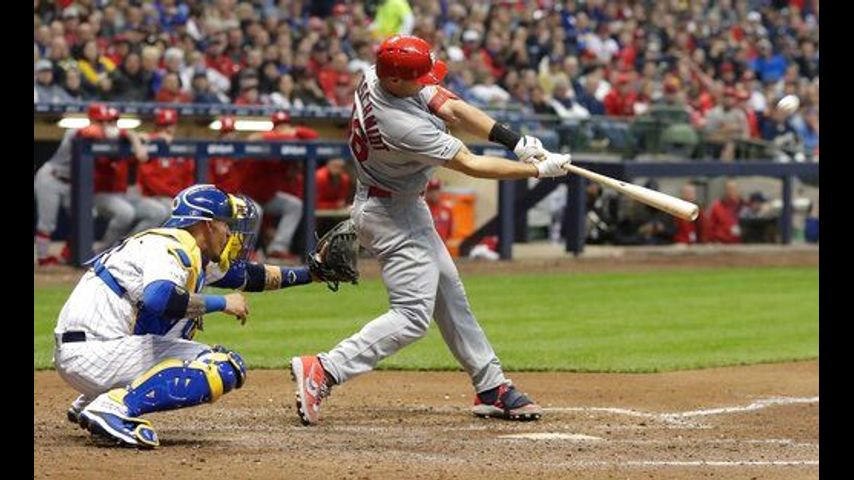 MILWAUKEE (AP) - Paul Goldschmidt hit three home runs and then was intentionally walked in the ninth inning with a chance to tie the major league record, and the St. Louis Cardinals beat the Milwaukee Brewers 9-5 Friday night.