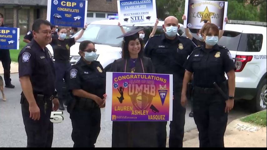 Cars, signs and balloons were all part of Customs and Border Protection's initiative to show their appreciation for high school and college graduates.