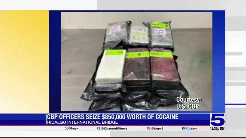 U.S. Customs and Border Protection officers seized $850,000 in cocaine on Easter Sunday at the Hidalgo International Bridge, according to a news release.