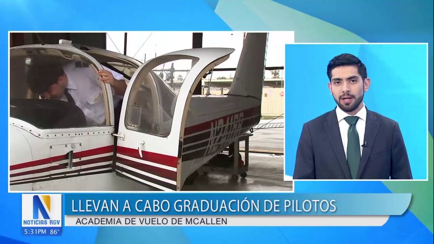 Celebración graduación de pilotos en academia de vuelo de McAllen