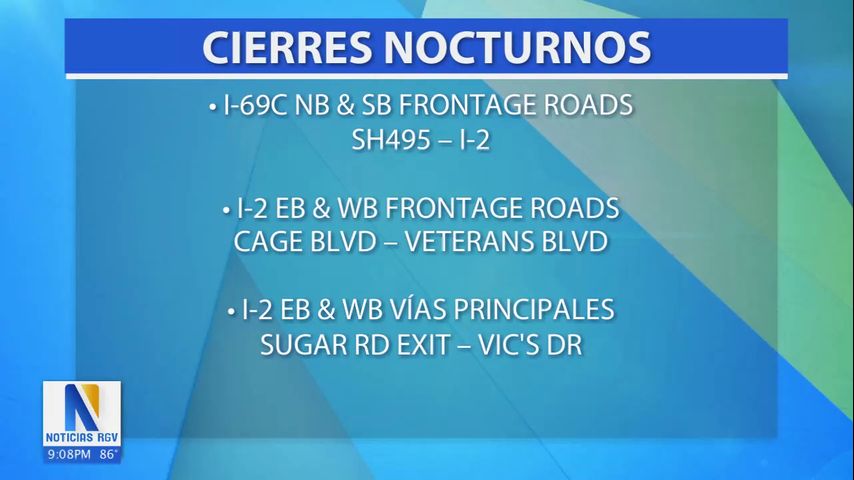 Residentes de Pharr se podrán ver afectados por varios cierres durante la noche que se llevaran a cabo durante las próximas semanas.