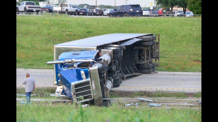 The tractor-trailer rolled onto its side at about 5:30 a.m. Tuesday after veering off the road and overcorrecting, according to the Texas Department of Public Safety. The highway reopened at about 7 p.m. that day, DPS said.