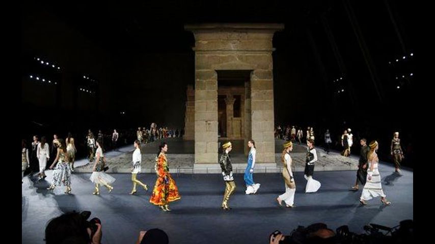 A shiny and glamorous version of ancient Egypt ruled the evening - with entertainment royalty on the runway, too - as Chanel brought its traveling fashion show to New York and the famed Temple of Dendur at the Metropolitan Museum of Art.