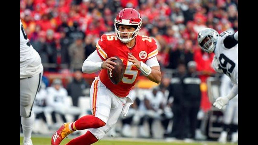 KANSAS CITY, Mo. (AP) - Patrick Mahomes stalked Chiefs wide receiver Damarcus Robinson on the sideline as chants of "MVP" echoed throughout Arrowhead Stadium, trying to track down a football that would serve as a keepsake not only of this night but of this season.