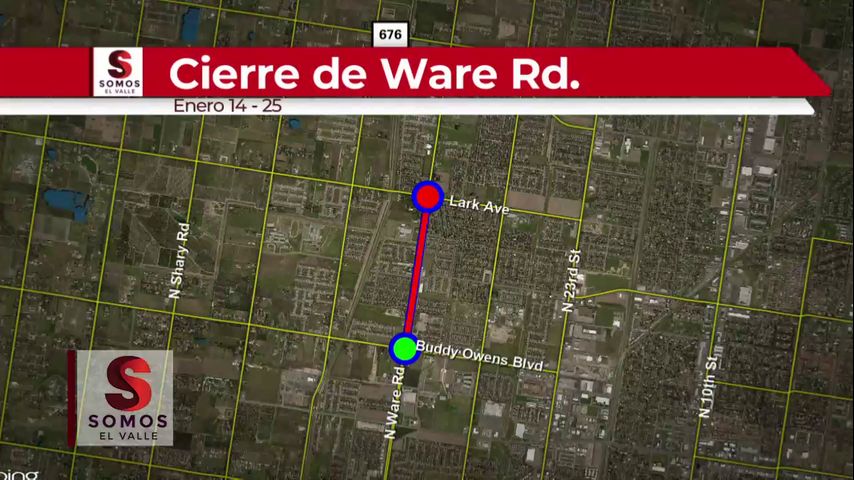 MCALLEN - Una porción de la calle Ware Norte en McAllen entre la Milla 3 y Milla 5 estará cerrada de 7 de la tarde a 5 de la mañana hasta el 25 de enero.