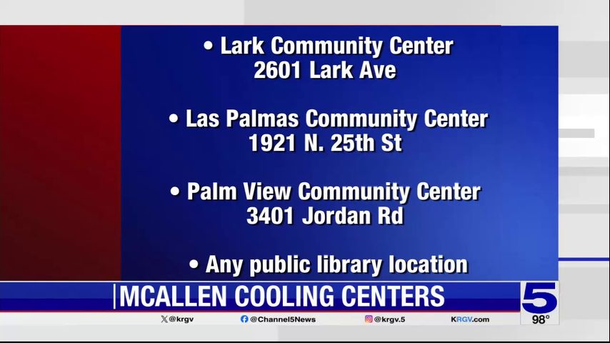 Several facilities across McAllen will serve as cooling centers this weekend, according to a news release.