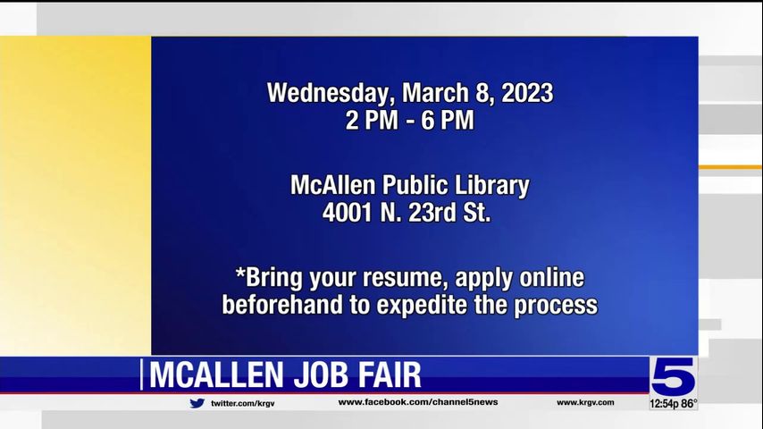 The city of McAllen will be hosting a job fair on Wednesday from 2 to 6 p.m. at the McAllen Public Library.