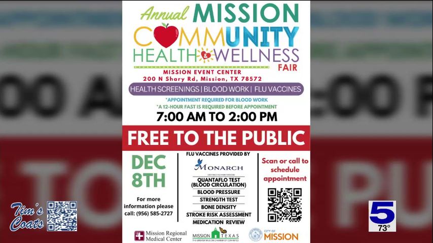 The Mission Community Health & Wellness Fair is set for Friday, Dec. 8 from 7 a.m. to 2 p.m. at the Mission Event Center — located at 200 N. Shary Road.