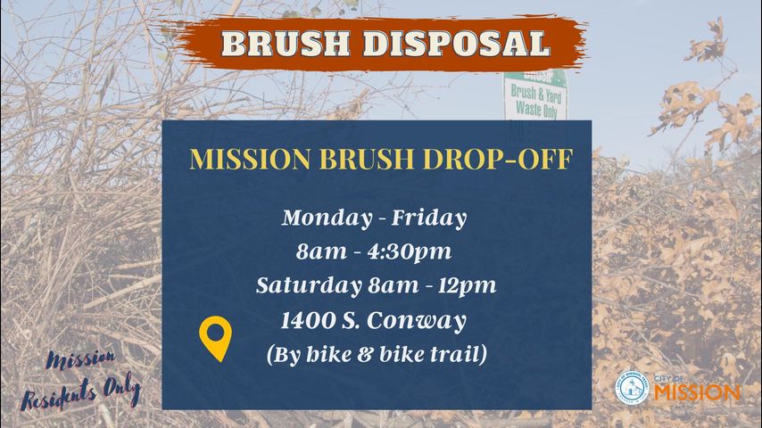 To assist residents in disposing of brush items, the city of Mission is opening up its landfill area for citizens to dispose of their brush free of charge.