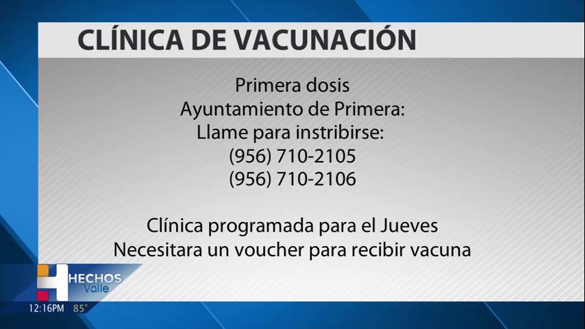 Se puede inscribir por teléfono, sólo tiene que llamar al 956-710-2105 , las vacunas serán administradas el jueves en el Ayuntamiento de Primera necesitará un vale para poder recibir la vacuna.