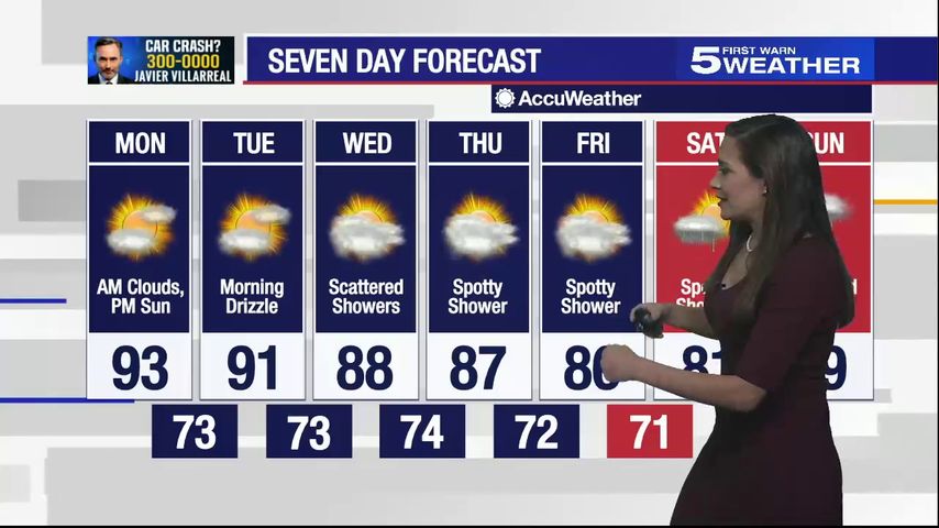 Cloudy skies, temperatures in low 80s expected to turn around by Monday afternoon