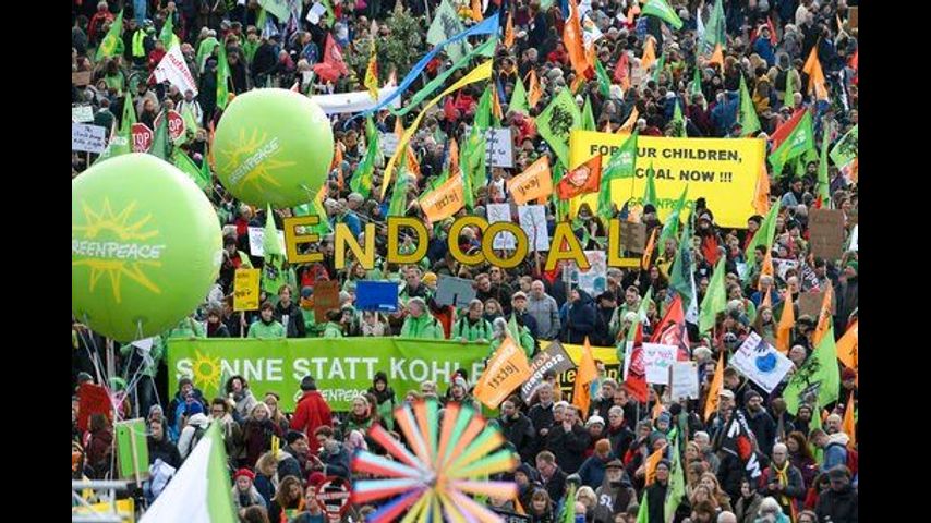 Not far from the meeting venue, Polish anti-coal activists held a small protest Sunday. It was dwarfed by marches in Brussels, Berlin and Cologne over the weekend calling for greater action to curb climate change.
