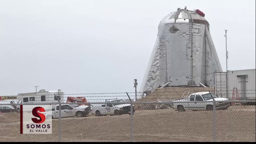 CERCA DE BROWNSVILLE - Un cohete de SpaceX ubicado en la Playa Boca Chica fue puesto movido a su lugar para prepararlo para una prueba de lanzamiento.