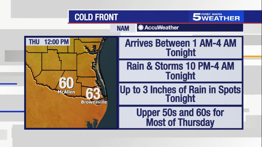 A cold front will move through the Rio Grande Valley late Wednesday night.