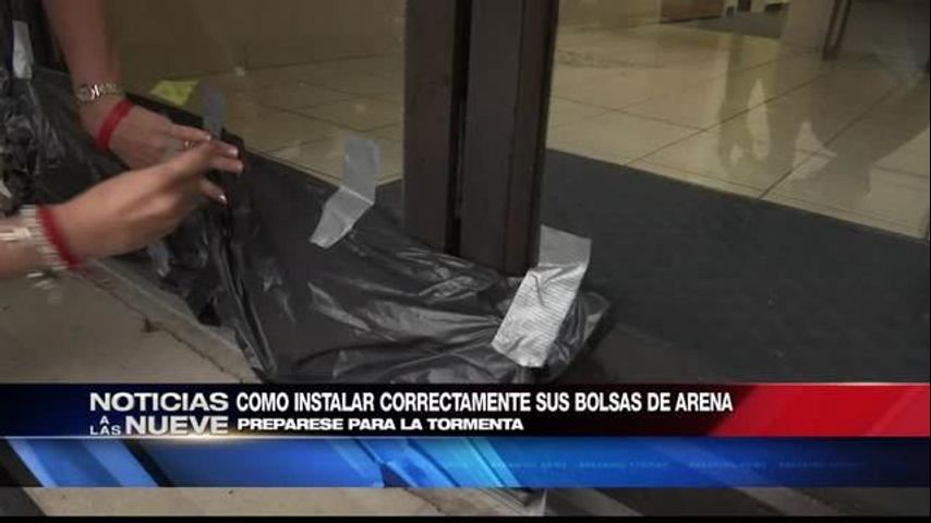 La directora ejecutiva de la Cruz Roja del Valle del Rio Grande, Danella Hughes, nos muestra lo que debe hacer antes de colocar las bolsas de arena.