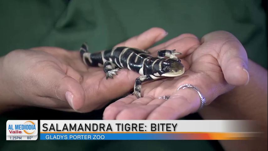 En Comunidad, Alejandra Rodríguez, de Gladys Porter Zoo, nos enseña sobre la salamandra tigre llamada Bitey.
