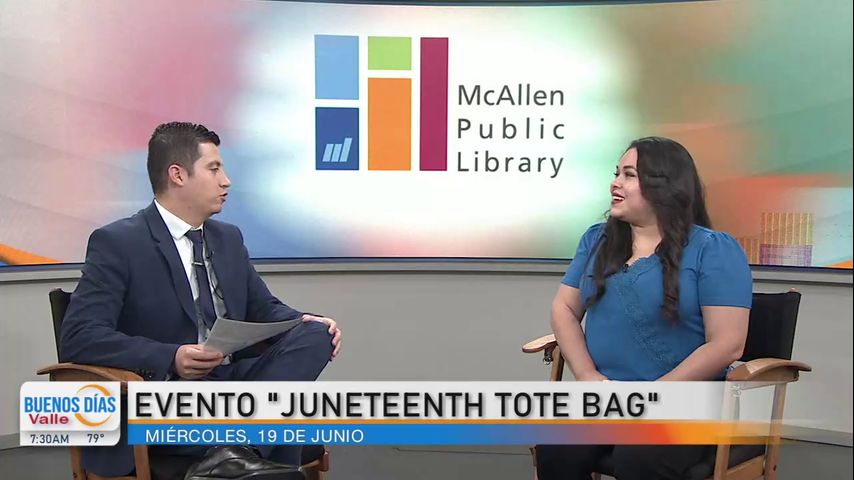 Esther Herrera, representante de la Biblioteca Pública de McAllen, visita Noticias RGV para invitar a la comunidad del Valle al evento "Juneteenth Tote Bag" a realizarse este miércoles 19 de junio.