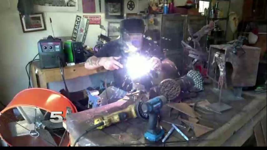 Abstract Artist Sean Hughes was a former Harlingen police officer and a veteran. After he was diagnosed with PTSD he decided to start his bucket list early and learn how to weld.