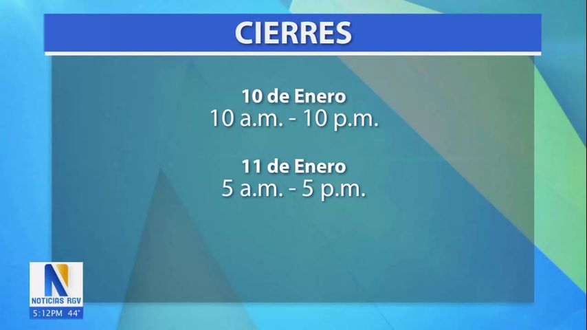Los cierres están programados para el 10 de enero, de 10 am a 10 pm y, de ser necesario, para este sábado de 5:00 am a 5:00 pm.