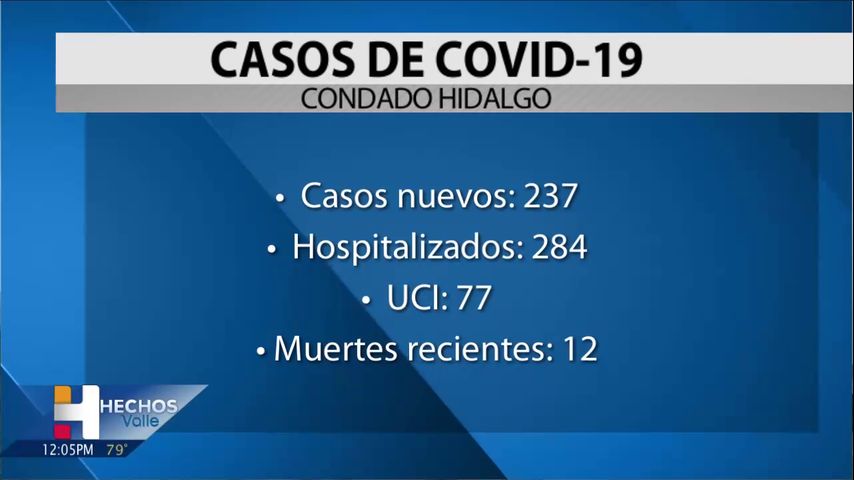 El Condado Hidalgo reportó el miércoles 12 muertes relacionadas con el coronavirus y 237 casos positivos de COVID-19, según un informe del Departamento de Salud y Servicios Humanos del Condado Hidalgo.